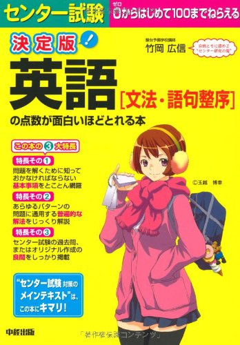 あらすじ(Amazonより):言わずと知れたカリスマ英語講師・竹岡広信先生のデビュー作にして代表作の1つである「竹岡センター英語」の3度目の改訂版がいよいよ刊行。差がつかなそうでじつは差がつく「文法・語法問題」、パターンがあるようでじつはない「語句整序問題」の2大テーマに、近年の新傾向である「熟語問題」を追加。知っていれば天国、知らないと地獄という"合否分け目"の出題への対策はこれでバッチリ。センター「英語(筆記)」の対策は、この本なくして始まらない!