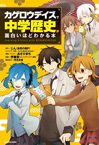 あらすじ(Amazonより):◆ ◆ ◆ KAGEROU PROJECT×学習参考書シリーズ累計20万部突破!! ◆ ◆ ◆ 【マンガ+キャラの会話で、3年分の歴史がイッキにわかる!!!】 ◎〈 KAGEROU PROJECT×学習参考書シリーズ >とは、各方面から圧倒的支持を受け、 発売から1年半で累計20万部を突破した超人気の「学習参考書」シリーズ。 小学校から中学校へ上がる時点でつまずいてしまいがちな「中学歴史」を、古代文明から現代まで、 中学歴史の超重要45テーマをまとめて総ざらい&復習できる1冊が満を持して登場! ◎マンガと会話だけで中学の歴史を効率的にインプットするために生み出された 本書オリジナルの3ステップ構成で、歴史がわかる&どんどん面白くなる! 1、概要のインプット(=キャラクターの会話で時代の輪郭をつかむ) ↓ 2、時代の理解(=マンガで時代背景や流れ・出来事の核心を押さえる) ↓ 3、問題演習(=1+2の理解度チェック) 1テーマたった4ページと侮るなかれ。各テーマの核心と重要ポイントをぎゅっと 詰め込んでいるから、予習・復習はもちろん、定期テスト対策や受験前の土台づくりにも しっかりと役立ちます! マンガは気鋭の漫画家・あさひまち氏が担当。 精魂こもった100P超のオール描き下ろし。 ◎監修は、会員数約25万人以上を誇るオンライン予備校「スタディサプリ」の伊藤賀一先生。 伊藤先生の「生徒目線でかみくだかれた面白い授業」の内容が、 そのまま本書の世界観にも反映され、よりいっそう読み進めたくなる参考書として完成しました。 ◎もちろん、豪華2大特典つき! 1、いつでも時代を確認できる!「メカクシ団特製歴史年表」 (サイズ:縦188mm×横349mm/ジャバラ綴じ込み) 2、机に貼れば勉強の士気が高まる「カバー裏特製ミニポスター」 (サイズ:縦432mm×横188mm)