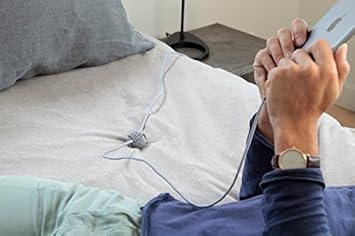 内容(Amazonより): 家でiPhoneやスマホを充電する時に9割近くの人がフラストレーションを抱えているという事実から生まれた商品。「充電しおわったときにライトニングケーブルをiPhoneから抜くと、ケーブルがおっこちちゃった!・・・う・・・・ぅぅ・・・」という経験は家でスマホをもっている人であれば誰しも一度は経験したことがあるでしょうね。このケーブルは、ライトニングやUSBの橋にちょっとした重石となるようなこぶをつけるというシンプルな発想。でもこのシンプルな発想仕組みでありながらそれなりのお値段がするのでちょっとびっくり・・・ですが・・。 正規品のiPhoneのライトニングケーブルがお店で買うと3000円ぐらいするから2・3本分っていう感じで価格設定しているんでしょうねぇ。ちなみに日本では売っていくて平行輸入となるみたいです。