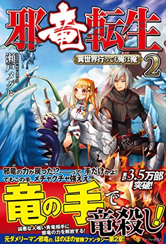 あらすじ(Amazonより):ひょんなことから異世界最強の邪竜に転生しちまった俺、ジャー。まあ、今は人型になって、エルフの従者イレーヌとのんびり過ごしてんだわ。でもさ、人として生きるのって大変なわけ。それは日本でも異世界でも一緒な。要は金。金がなきゃ、どうにもなんねーのよ。そんで、金欠でヒーヒー言ってたら、とびきりのもうけ話が舞い込んできやがった。公爵家の娘ルシルが持ってきたその話は、とある村を襲う青竜を討伐するという案件。厄介といえば厄介だが、まあ、貧乏人に選択肢はなく、一応試験受けて討伐隊に参加。で、速攻遭遇したんだけど、何こいつ、めちゃくちゃ強えーじゃねーか!邪竜時代ならいざ知らず、弱体化しちまった今じゃキッツい。邪竜時代なら―?仕方ねえから見せてやっか、邪竜の力というやつをさ。俺ってば、手だけなら邪竜に戻せるようになったからな。んじゃ、覚悟しろよ、バカ青竜。間抜けなてめえに、邪竜の怖さ、教えてやんよ!